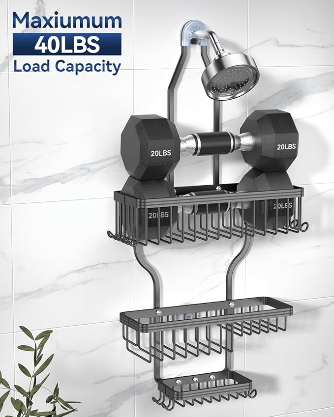 - Clean Up Your Shower Space - The hanging shower organizer comes with 3 baskets and 10 hanging hooks. The top 2 baskets are large enough to store shower gel, shampoo, and body lotion. The bottom soap basket is ideal for soap storage. 10 hooks hang razors, loofahs, toothbrushes, and towels. The hanging shower organizer maximizes your shower storage space and keeps your toiletries in order. Dimensions: 13×5×27.5 inches (L×W×H)