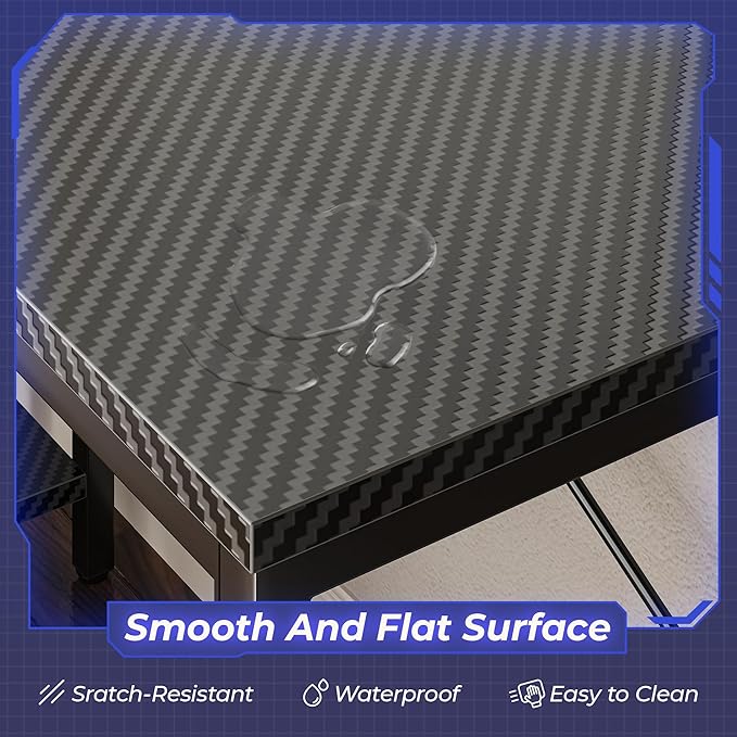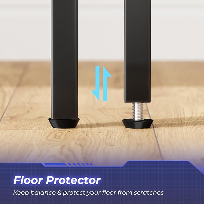 - 【Balanced Adjustable Feet & X Bars】: With adjustable feet under the work desk for home office, whenever you work or game on the desk, no wobbling worries. Reinforcing X-bars enhance the structure's stability, while the Carbon Fiber Black surface not only exudes future sense but also wipes clean effortlessly with a damp cloth