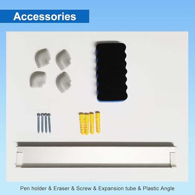 - 【High Grade Sturdy & Durable Construction】 The writing white board is built with ABS plastic corners, with NO sharp or pointed edges. NEVER warp, NEVER crease, NEVER bubble after years.