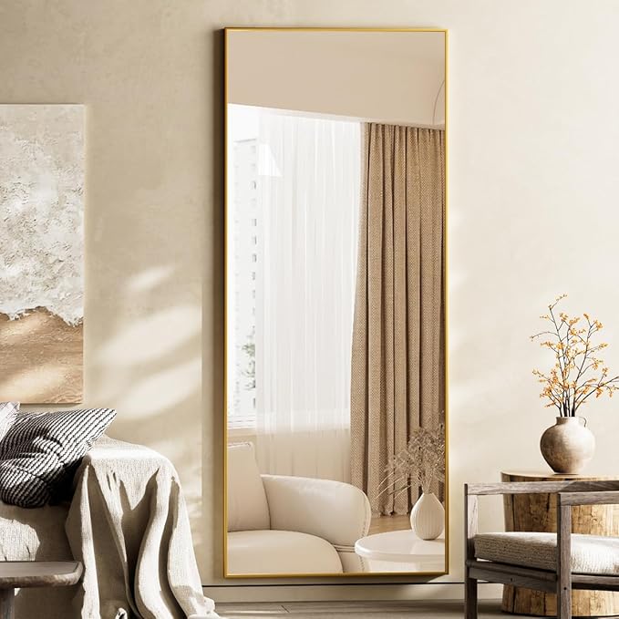 Koonmi Large Mirrors for Wall, 65"x24" Full Length Mirror with Stand, Full Body Mirror with Aluminum Alloy Frame, Hanging or Leaning Against Wall, Floor Standing Mirrors for Bedroom Living Room, Gold