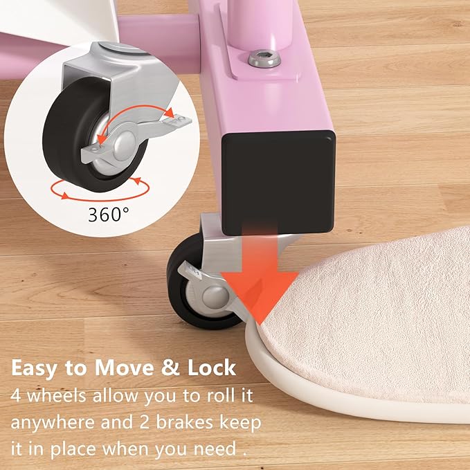 Laiensia Double Rods Garment Rack with Wheels, Clothing Rack for Hanging Clothes,4 Hooks, Multi-Functional Bedroom Clothes Rack, Pink