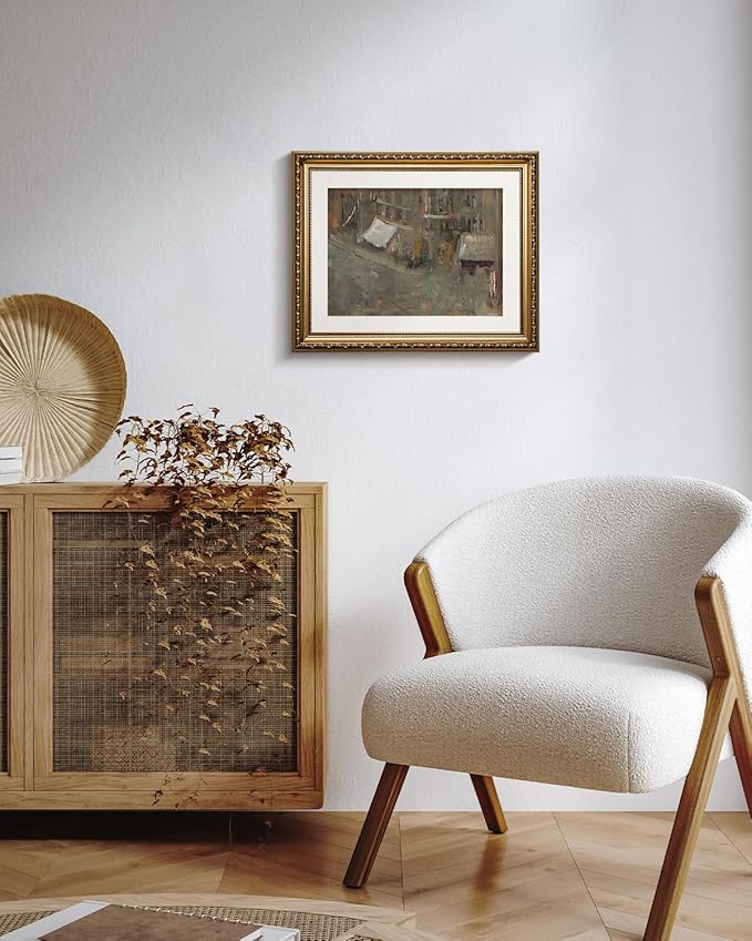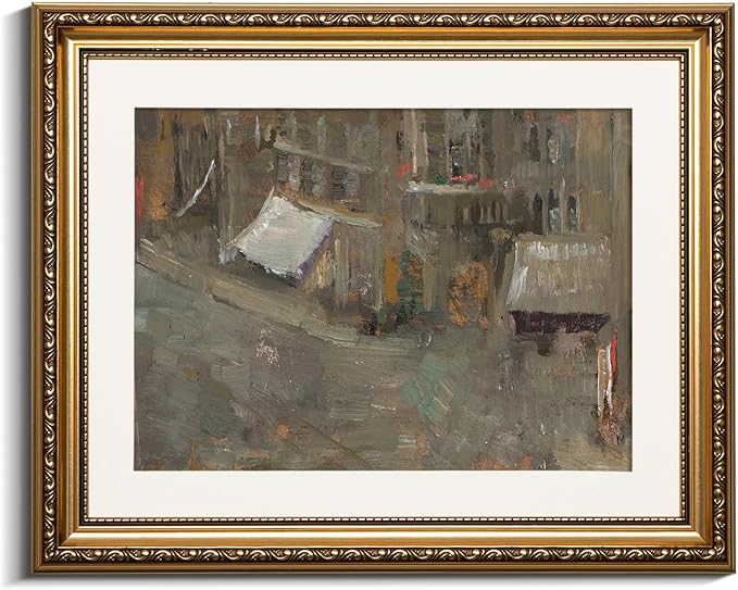 - VINTAGE ABSTRACT ROOM DECOR: This canvas wall art painting "Place de Ternes in Paris," uses thick brushstrokes to show the dynamics and textures of the street scene. The color palette tends to be gray, but the characters' clothing and windows, the artist uses highlights of orange and red to bring vitality and contrast to the picture. The painting room decor conveys an impression of the city after rain or in the evening, which seems both historical and a little mysterious.