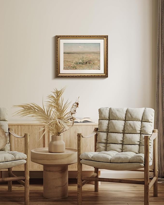 VIYYIEA Gold Framed Wall Art Canvas Print - Vintage Meadow Landscape Oil Painting - Farmhouse Wall Decor - Flower Art - French Decor for Living Room & Cozy Bedroom - 13x16in