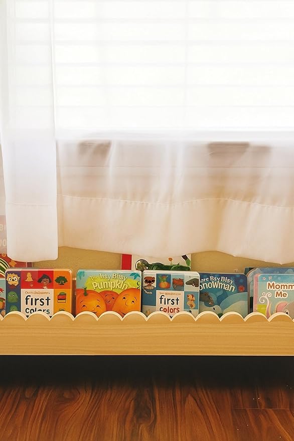 Scalloped Pine Bookshelf for Kids | Preassembled Montessori Wall Shelf | Drop-Resistant, Easy Install, 34" Wide, Nursery & Toddler Room Organizer