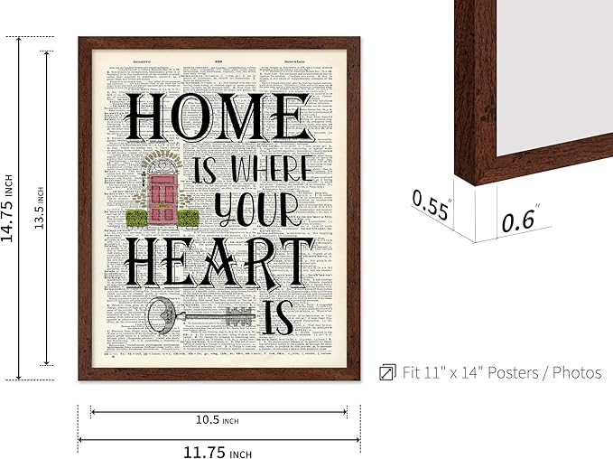 Poster Master Dictionary Art Poster - Home Is Where Your Heart Is Print - Motivational Art - Gift for Men & Women - Inspiring Wall Decor for Dorm, Bedroom or Living Room, 11x14 Brown Framed