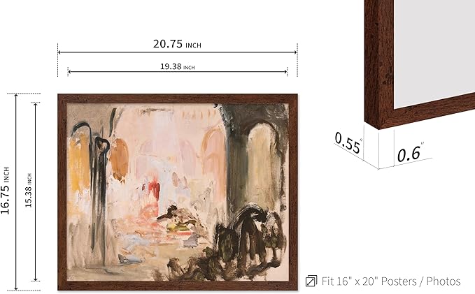 Poster Master Vintage Abstract Print - Retro City Landscape Poster - Modern Art - Moody Painting - Farmhouse Wall Design - Aesthetic Art - Great Living Room or Office Decor - 16x20 Brown Framed