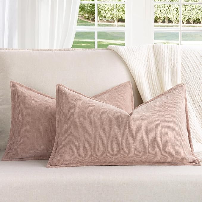ZWJD Dusty Pink 12x20 Pillow Covers Set of 2 Chenille Throw Pillow Covers with Elegant Design Soft and Luxurious Decorative Throw Pillows for Couch, Bed, and Home Decor
