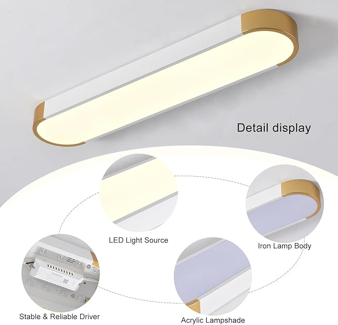 - Multifunctional Linear Light Fixture: White and gold modern ceiling lamp makes your room more fashionable and elegant. Linear LED Ceiling Lamp is ideal for kitchen,bedroom,living room,dining room,closet,laundry room,corridor,restaurant,aisle,hallway,cloakroom,etc. (Application area:8-10㎡.)