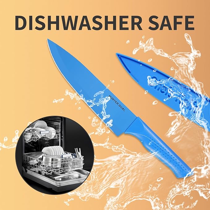 - DISHWASHER SAFE - Ceramic coated knives possess non-stick, rust-resistant, and heat-resistant properties, making it dishwasher safe, effortless to achieve clean cuts and easy to wash off.