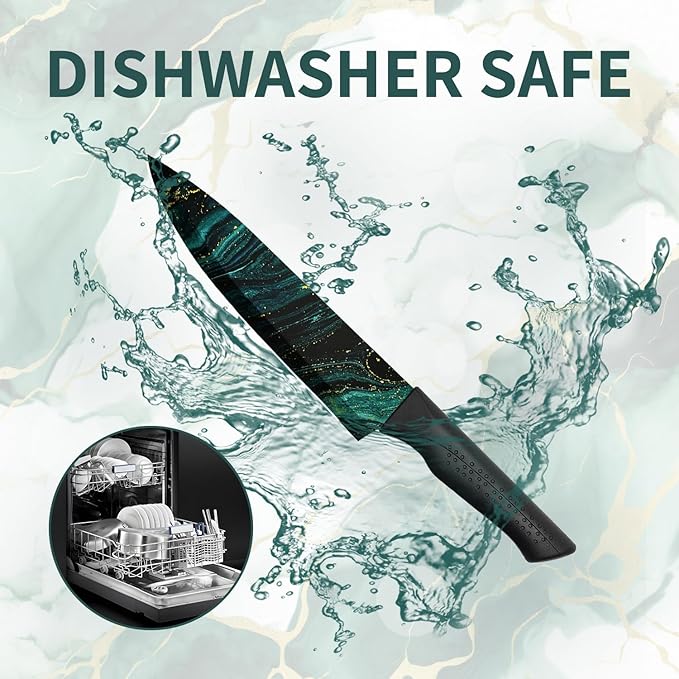 - DISHWASHER SAFE - Ceramic coated knives possess non-stick, rust-resistant, and heat-resistant properties, making it dishwasher safe, effortless to achieve clean cuts and easy to wash off.