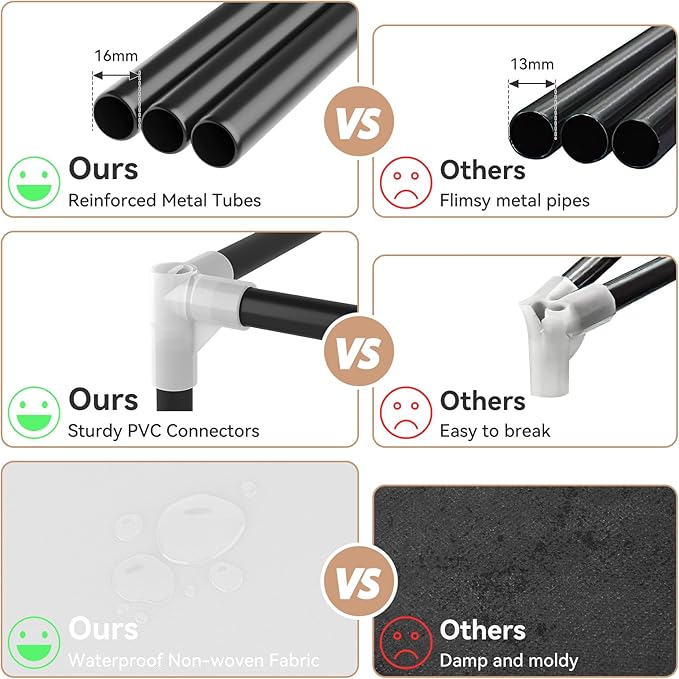 - ASSEMBLY WAS A BREEZE: The wardrobe storage closet comes with detailed installation instructions. No extra tools are needed. Just assemble the metal rod and plastic joint correctly according to the manual (Please ensure that the connection is in place). In addition, for your easy and quick installation, we have prepared a detailed installation video for your reference. (Behind the product pictures)