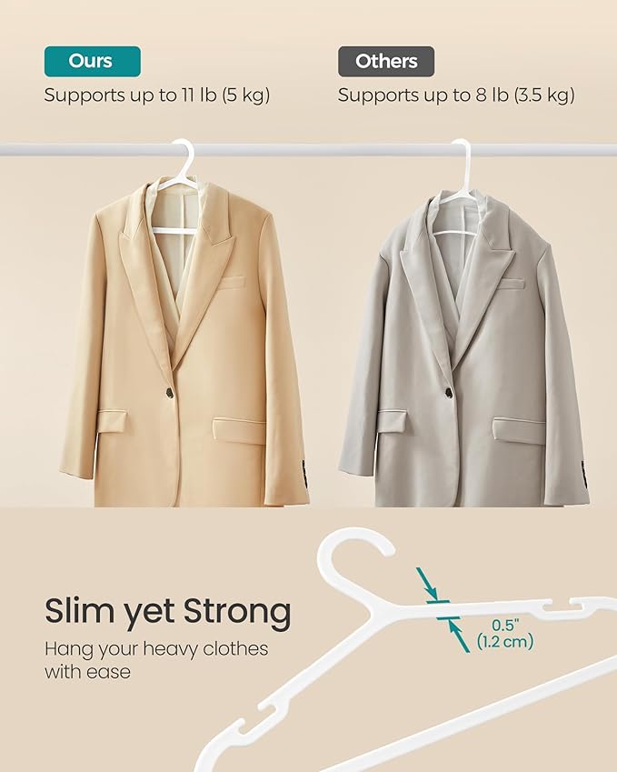 - 【SLIM PROFILE, GIANT POWER】Though quite thin, these lightweight hangers are powerful enough to hold up to 11 lb each; leave those heavy sweaters and winter coats to them—they can handle it