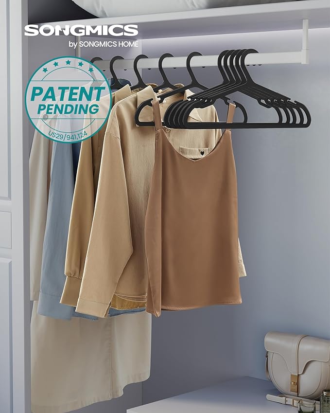 SONGMICS Clothes Hangers, Pack of 50, Plastic Hangers, with Wide Shoulder Notches, Space-Saving Coat Hangers, 16.4 Inches Wide, for Closet, Ink Black UCRP010B01