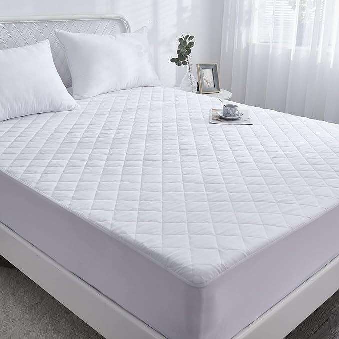 - DEEP POCKET & LUXURY SIZE:Deep pocket design effortlessly grips any mattress 8-21 inch, gives a smooth appearance once you applied. The fabric sides easily stretch to fit mattresses up to 18 inches thick.No matter how you move on the bed this pad will keep neat all the night. no worry of a messy bed anymore,this quilted mattress pad helps you and your guests rest as comfortably as possible.