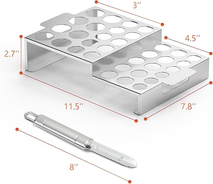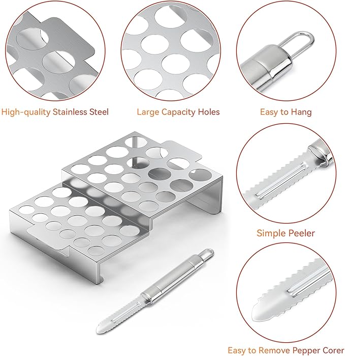Skyflame Jalapeno Grill Rack with Corer Tool, 34 Hole Stainless Steel Chili Pepper Holder with Upgrade Design in 2 Heights and 3 Hole Sizes for Grilling Jalapeño Peppers, Chicken Wings, Drumsticks