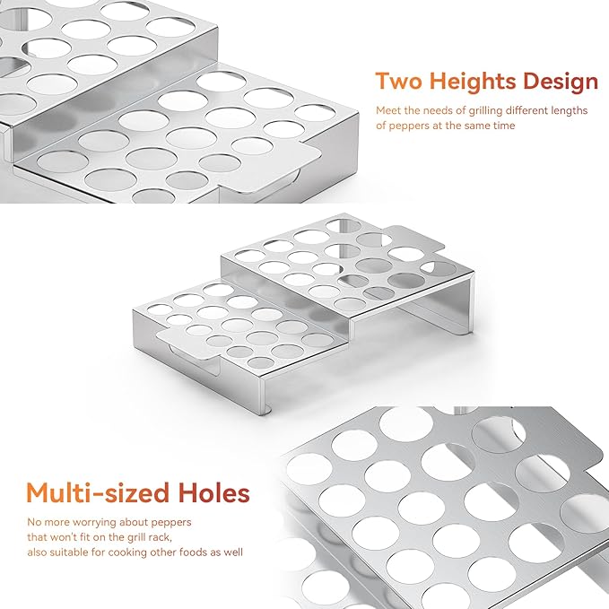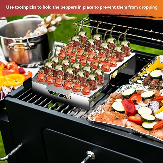 - Essential BBQ Pepper Holder: For BBQ enthusiasts, this jalapeño roasting rack is a must-have. Designed to roast peppers upright, it helps keep them in shape and prevents the filling from spilling out, allowing for better air circulation and even cooking.