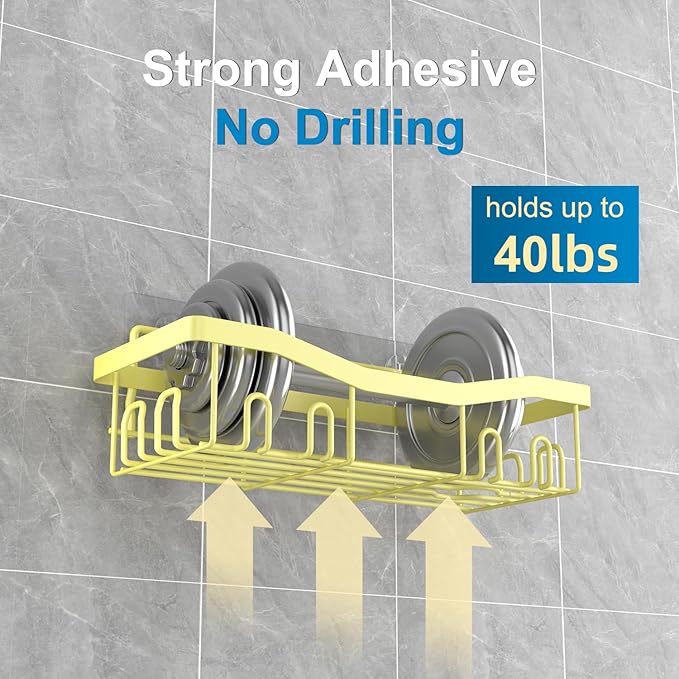 - 【Strong Load-bearing】:Our Shower Shelf come with ultra-powerful adhesive tapes that can hold up to 40 lb.( Renter friendly Tip: Use a hair dryer to heat it up before tearing it off)