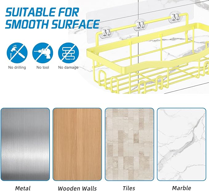 - 【Suitable for All Smooth Wall】:Shower Caddy Basket Shelf is easy to install, no drilling and will not damage the wall.