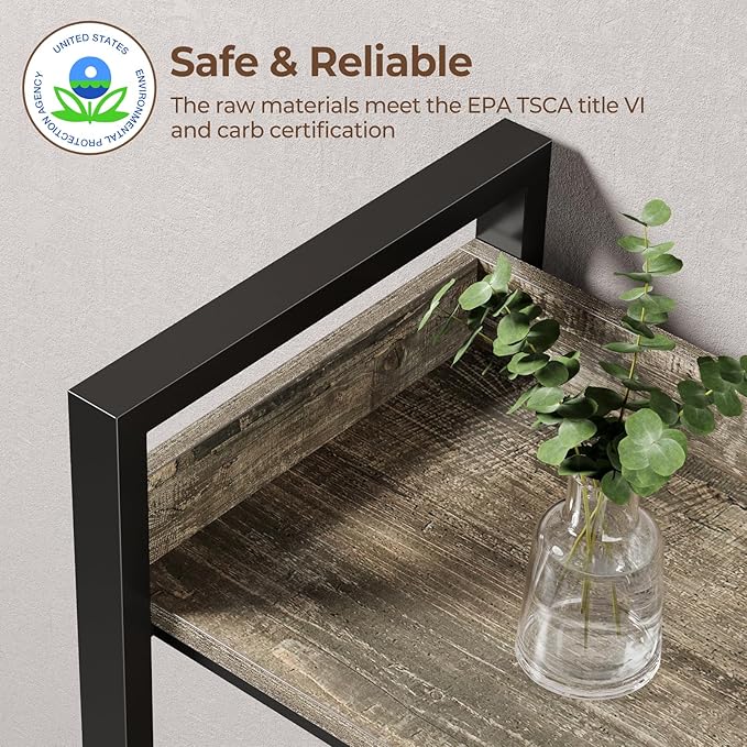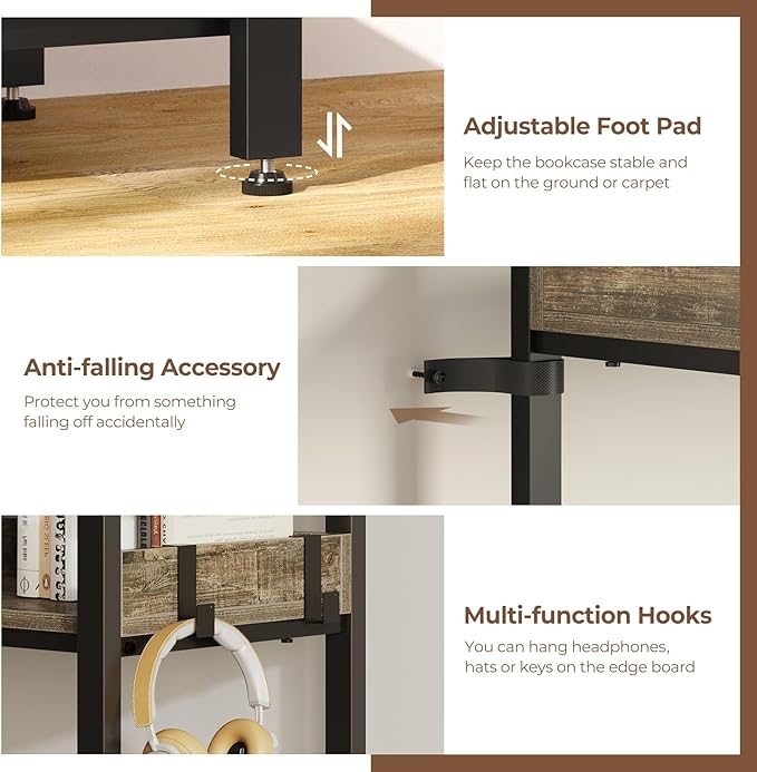 - 4 Storage Hooks and Edge Protection: This bookcase features 4 hooks for convenient hanging of handbags and decorations. Additionally, each shelf is designed with three open edge enclosures to secure your items and prevent accidental falls