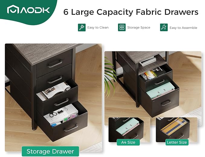 - 【L Shaped Desk with Drawers】This home office desk includes a file cabinet and 4-tier storage fabric drawers. File cabinet has two drawers to organize letter, legal and A4 size files. The 4-tier storage fabric drawers provide spacious under-desk storage space, keep your desktop clean and tidy.