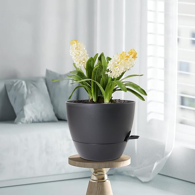12 inch Large Self Watering Pots for Indoor Outdoor Plants, Flower Plant Pots with Mesh Drainage Holes for Garden House, Plastic Planters with Reservoir for Home Decor, Black