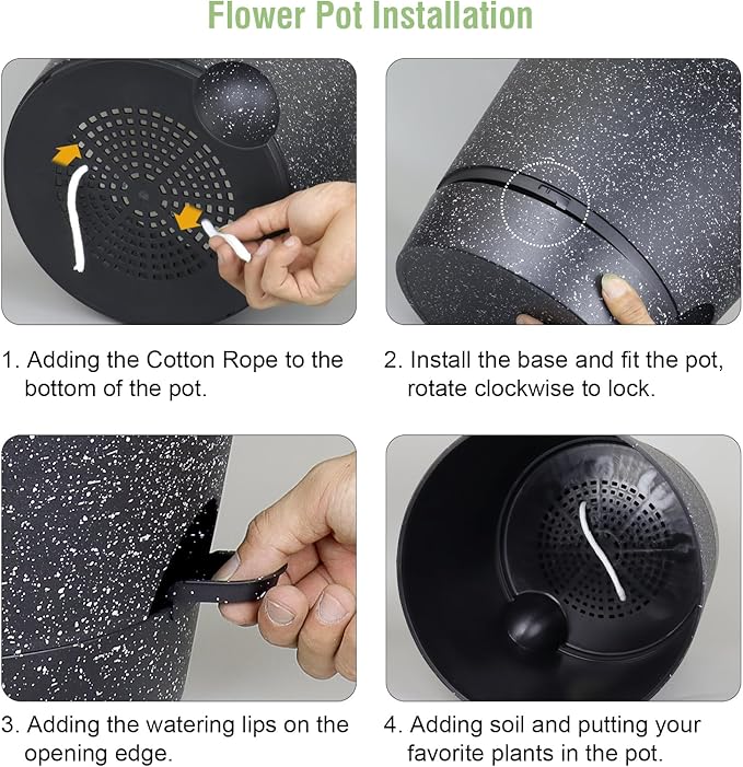 - 【Self-Watering Design】 Self-watering pots is includes a water reservoir at the bottom of the planter. This flower pots automatically supplies water to your plants as needed by a cotton rope, reducing the frequency of watering and ensuring your plants never go thirsty. The reservoir design also helps maintain a consistent moisture level, fostering optimal growth conditions.