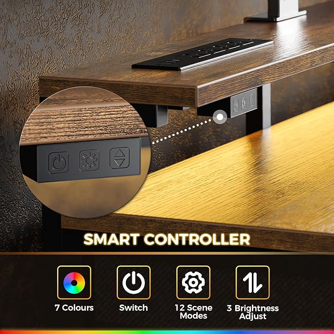 - 【Inspiring RGB LED Light】The RGB LED lighting on the grey desk creates a vibrant and immersive vibe perfect for both gaming and working. 12 scene modes, adjustable speed levels, and 3 brightness modes of the lighting can be easily changed using the smart controller installed on the LED lights. You can also explore over 60,000 colors, timing mode, or sync the lighting with the mic mode or music mode to follow the rhythm of your favorite tunes through app control. The LED light strip needs to be plugged into a USB port to work