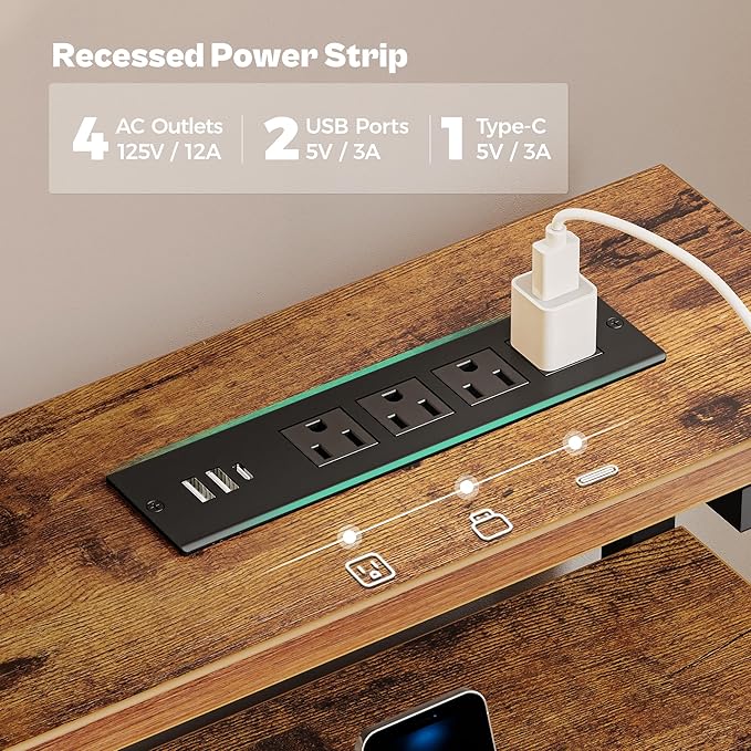 - 【Office Desk with Power Outlets】Our work desk is equipped with 4 standard plug outlets, 2 USB ports, and 1 Type-C port. Whether you need to charge your phone, power your gaming gear, or connect other office devices, this gaming table desk provides all the outlets you need, neatly organized to avoid cluttered wires