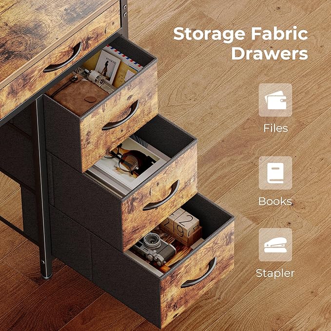 - 【Computer Desk with 6 Drawers】6 foldable and easy-to-pull fabric drawers. These drawers offer divided and private storage space, perfect for keeping your files, stationery, and other office supplies neatly organized. The generous storage capacity allows you to keep your workspace tidy and efficient