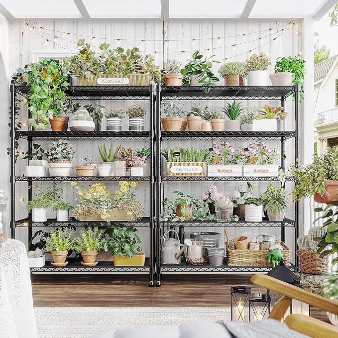 - 【1020 LBS Capacity Heavy Duty Metal Shelving】This metal shelves for storage made of heavy duty steel wirepanels and 19.1 mm diameter metal rods,can easily bear 204LBS each shelf ,1020 lbs bearing capacity totally