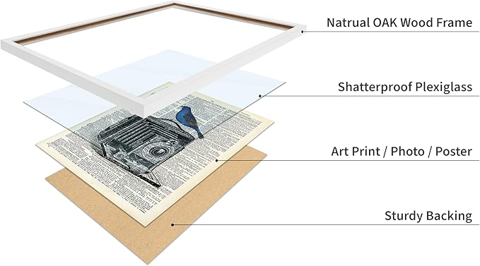 Poster Master Dictionary Art Poster - Antique Camera Print - Bird Art - Photography Art - Gift for Men, Women & Photographer - Chic Decor for Living Room, Bedroom or Office, 11x14 White Framed