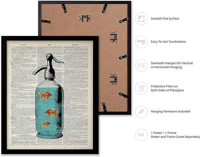 Poster Master Dictionary Art Poster - Goldfish Bowl Print - Fish Art - Aquarium Art - Gift for Men, Women & Animal Lover - Minimal Decor for Living Room, Bathroom or Office, 16x20 Black Framed