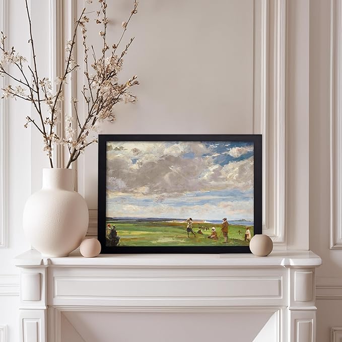 Poster Master Vintage Lady Astor Playing Golf at North Berwick Painting Poster - Retro Golf Course Print - Golf Art - Sports Art - Landscape Art - Office or Living Room Decor, 8x10 Black Framed