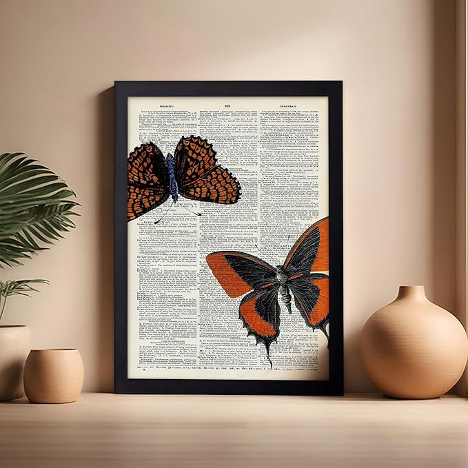 Poster Master Dictionary Art Poster - Butterflies Print - Moth Art - Butterfly Art - Insect Art - Gift for Men, Women & Animal Lover - Chic Decor for Living Room or Bedroom, 16x20 Black Framed