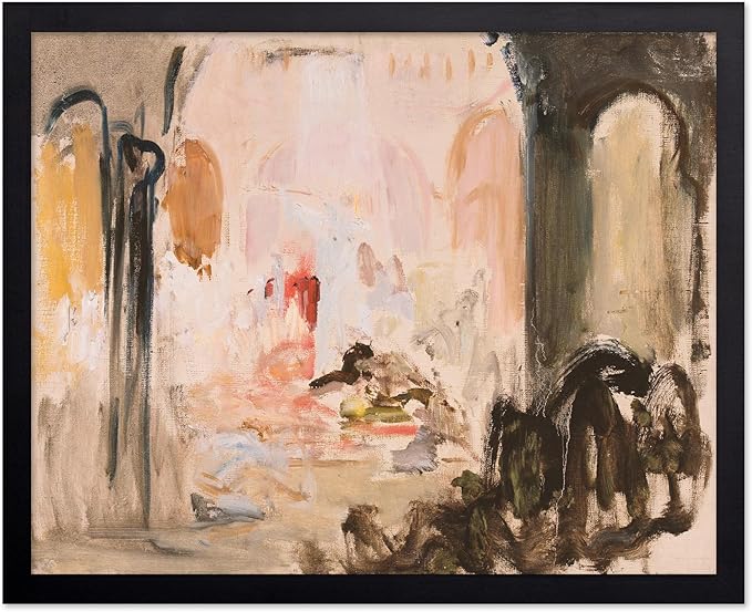 Poster Master Vintage Abstract Retro City Landscape Painting Print - Moody Modern Farmhouse Aesthetic Art - Great Living Room or Office Decor, 8x10 Black Framed
