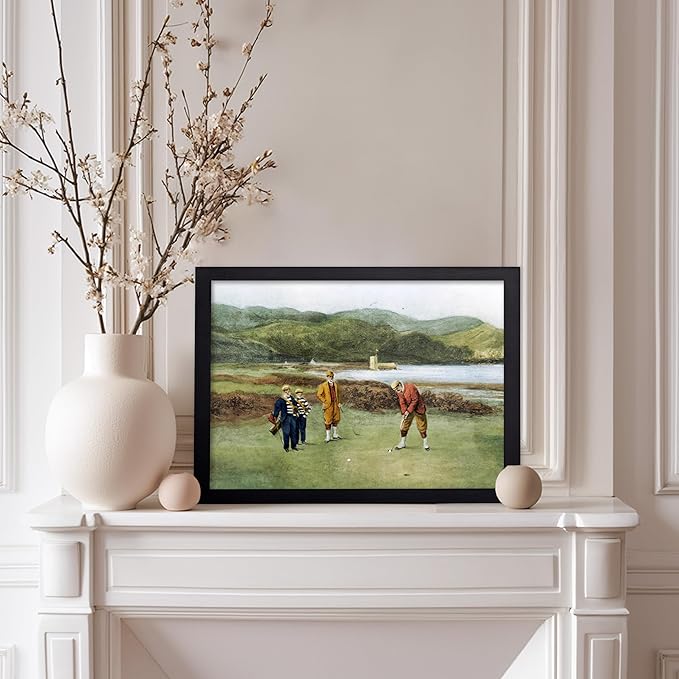 Poster Master The Putting Green Painting Poster - Golf Course Print - Golf Art - River Art - Sports Art - Landscape Art - Father's Day Art - Great Office or Living Room Decor, 8x10 Black Framed