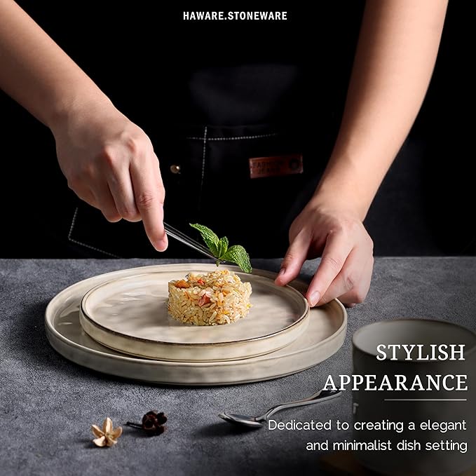 - 【PREMIUM STONEWARE】HaWare dinnerware set are made of high quality clay and glaze, NO LEAD, Non-toxic, Would not leach any harmful substance into your food or drink during using, High temperature fire-made production bring a thicker and stronger structure to the dishware, Sturdy and chip-resistant for long term heavy use, Also they are DISHWAHSERSAFE & MICROWAVE SAFE, Make cleaning and cooking a breeze