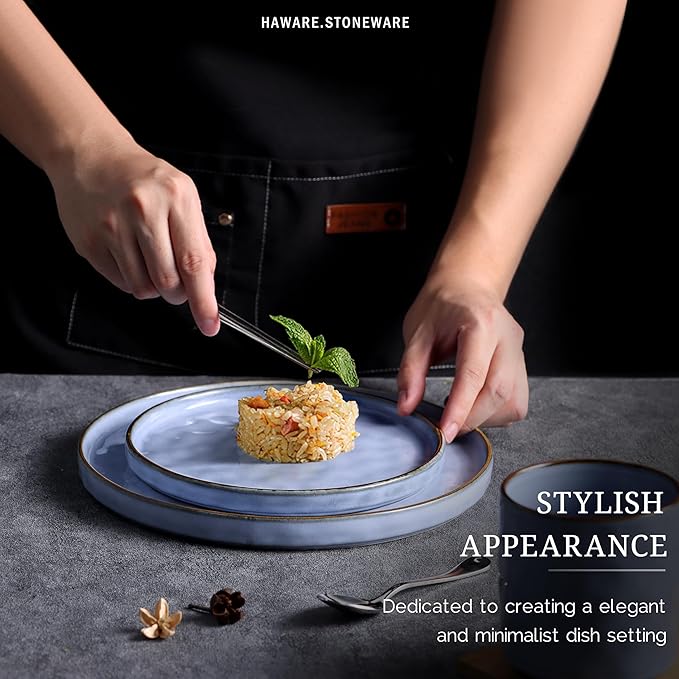 - 【PREMIUM STONEWARE】HaWare dinnerware set are made of high quality clay and glaze, NO LEAD, Non-toxic, Would not leach any harmful substance into your food or drink during using, High temperature fire-made production bring a thicker and stronger structure to the dishware, Sturdy and chip-resistant for long term heavy use, Also they are DISHWAHSERSAFE & MICROWAVE SAFE, Make cleaning and cooking a breeze