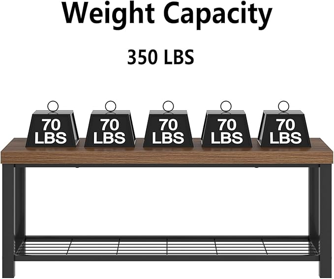FOLUBAN Shoe Bench, Modern Wood and Metal Storage Bench for Entryway Hallway, Industrial Indoor Bedroom Bench Seat for Living Room, Mudroom, Rustic Walnut, 47 Inch