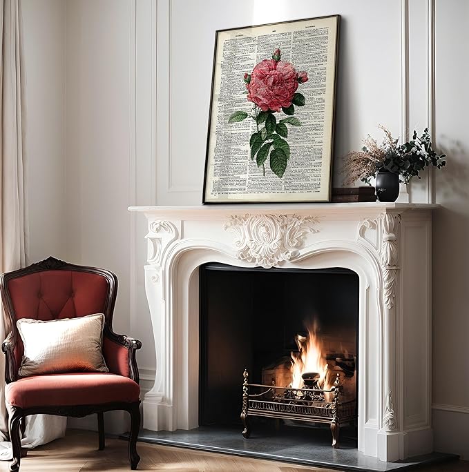 Poster Master Dictionary Art Poster - Pink Roses Print - Flower Art - Floral Art - Gift for Him, Her & Florist - Minimal Decor for Living Room, Bedroom, Dorm or Flower Shop, 24x32 Unframed Wall Art