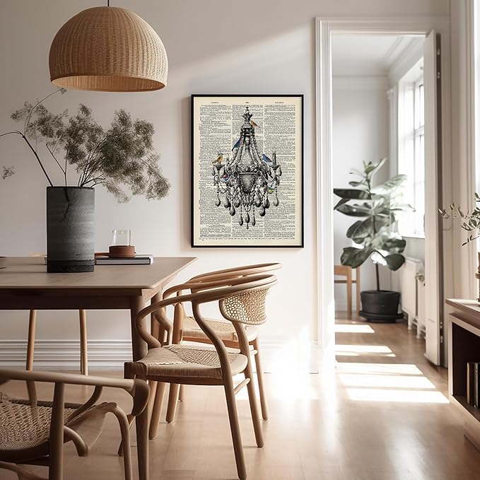 Poster Master Dictionary Art Poster - Antique Chandelier Print - Bird Art - Baroque Art - Gift for Men & Women - Chic Decor for Living Room, Dining Room, Bedroom or Kitchen, 24x32 Unframed Wall Art