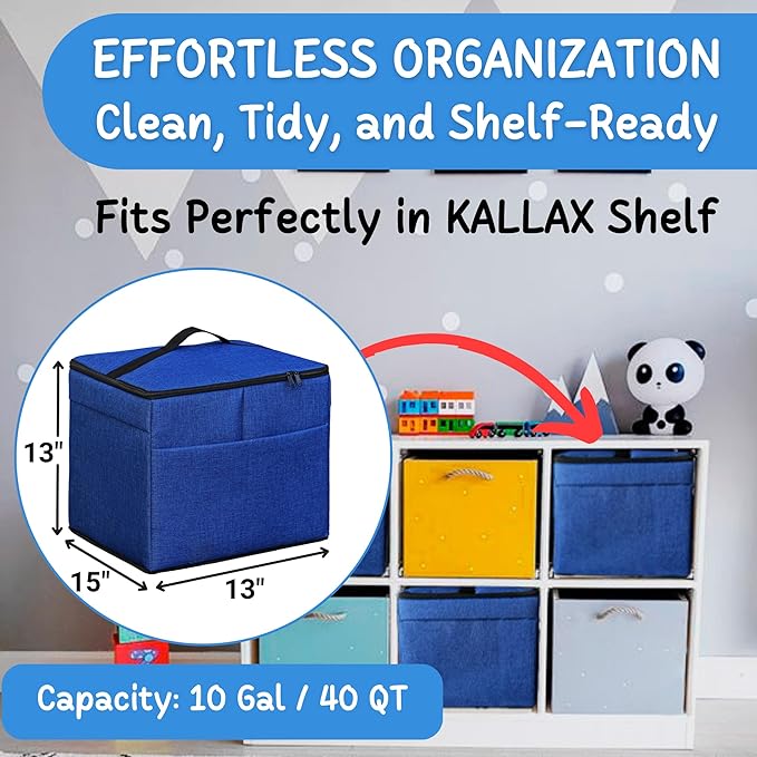 - Looks Better: Say goodbye to those flimsy toy storage bags and take organization to the next level! Our cube storage organizer has reinforced yet soft walls, and fits a standard shelf of 13x13 inches.