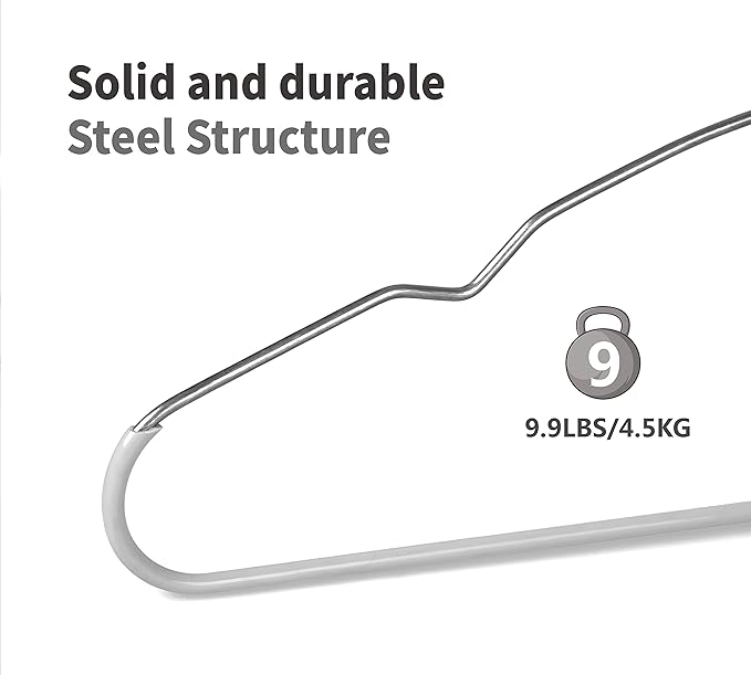 - This Heavy Duty Metal Hangers are made of premium stainless steel, which is proved to be sturdy and won’t get deformed like other metal or wire hangers after hanging heavy clothing for a long time, more durable than typical hangers.
