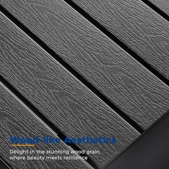 - DURABLE IMITATION WOOD TABLE: The modern aluminum outdoor patio furniture coffee table is made of 8-piece imitation wood, which can not only enhance the natural visual enjoyment but also has the characteristics of excellent moisture-proof and water-resistance. Different from tempered glass, the imitation wood will not crack suddenly due to high temperature.