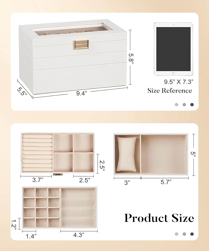 - Useful Details: With its dust-proof transparent cover, you can quickly find your jewelry at a glance. The grooves at the bottom of the stackable jewelry trays help you stack them together to save space
