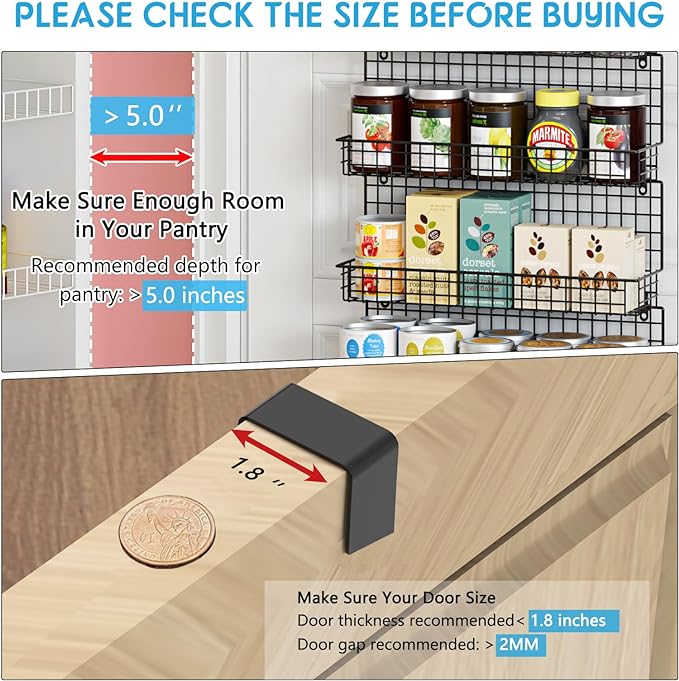 - 【Easy Installation】: Installing our spice rack is simple and straightforward. Secure it to the wall or door using the included screws. You can freely customize the arrangement by combining different-sized racks, adjusting spacing as needed, and using them together or separately.