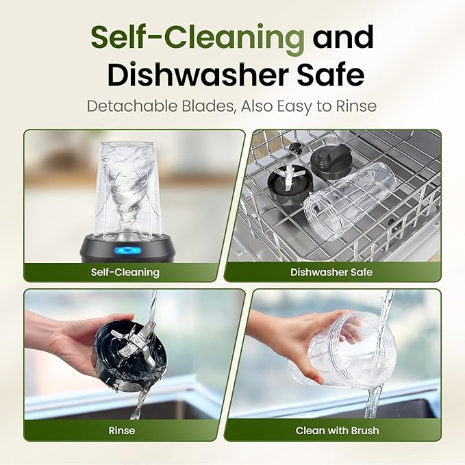 - 【Easy Dishwasher Cleaning】The smoothie blender cups and to-go lids are dishwasher safe can be easily placed in the dishwasher to release your hands when you get home from work