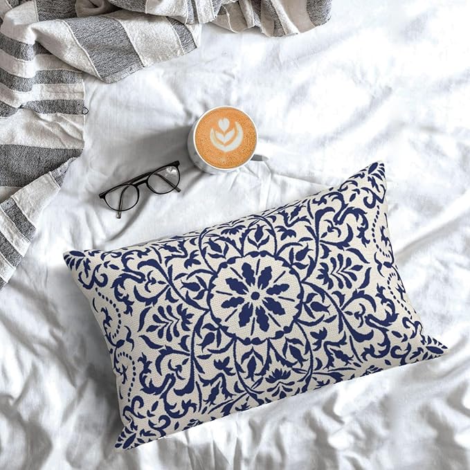 - ★SIZE & PACKAGE: Blue boho pillow covers 12x20 inch set of 2.(no insert or filler)