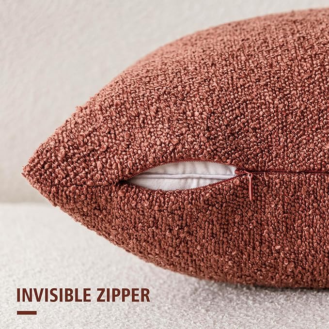 Foindtower Pack of 2 Textured Boucle Throw Pillow Covers Accent Solid Pillow Cases Cozy Soft Decorative Couch Cushion Case for Chair Sofa Bedroom Living Room Home Decor 18x18 Inch Orange Rust Red