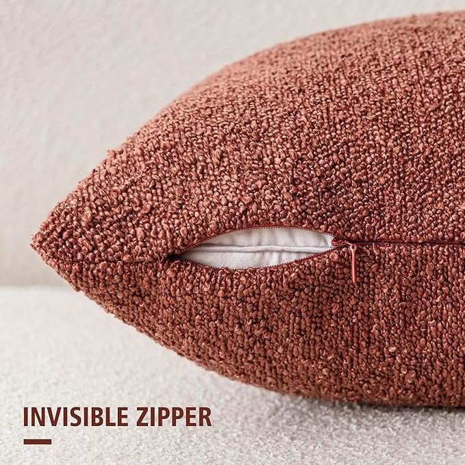 Foindtower Pack of 2 Textured Boucle Throw Pillow Covers Accent Solid Decorative Pillow Cases Cozy Woven Couch Cushion Case for Sofa Bedroom Living Room Home Decor 20x20 Inch Orange Rust Red